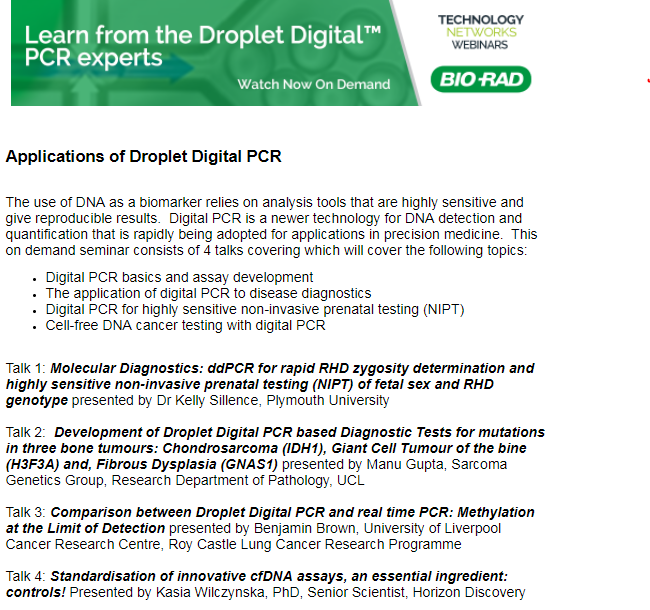Este es un gran programa de seminarios sobre ddPCR y aplicaciones!
